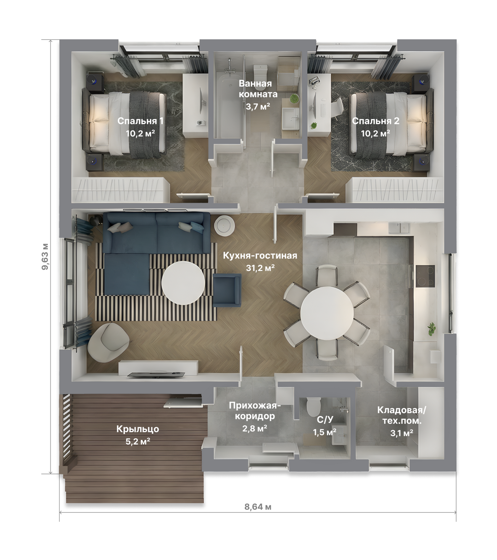 Вы получаете полностью готовую коробку дома с закрытым контуром, готовую к внутренней отделке.