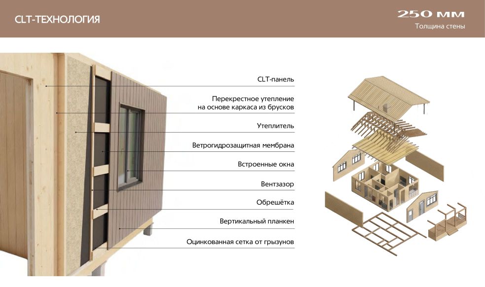 — CLT-панели. Это обеспечивает высокую теплоизоляцию и стабильность конструкции;
